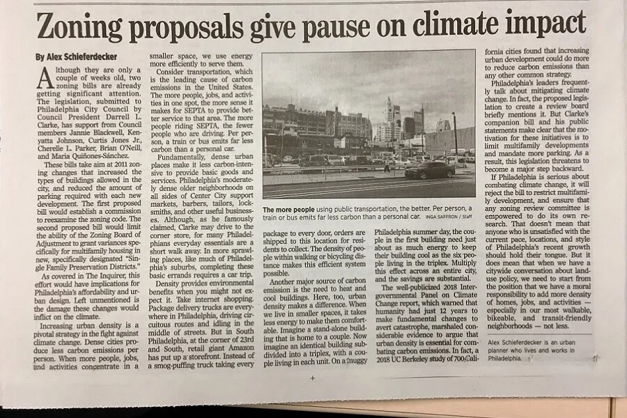 Inquirer Op-Ed: New City Council Zoning Bills Should Give Pause On Climate